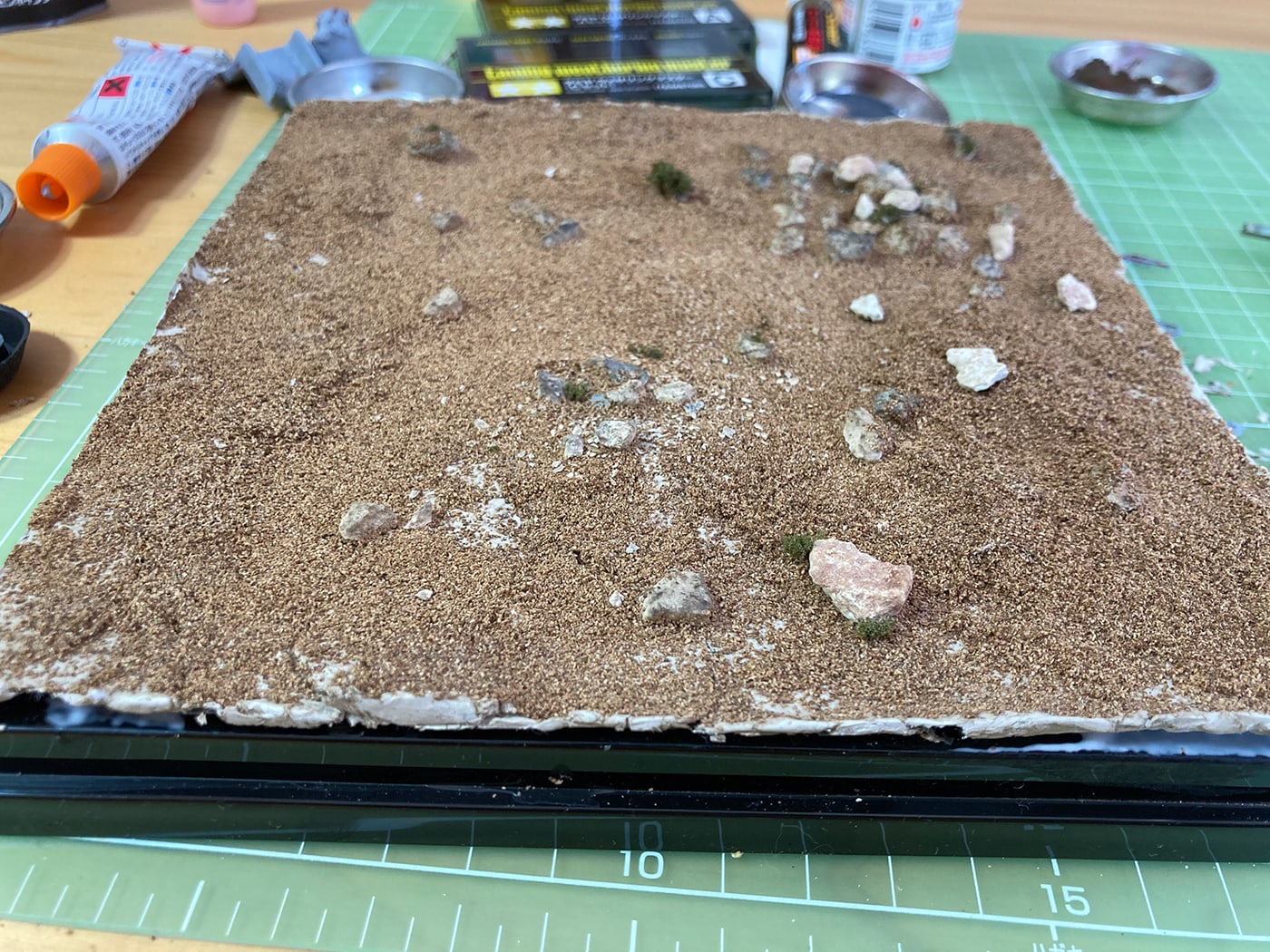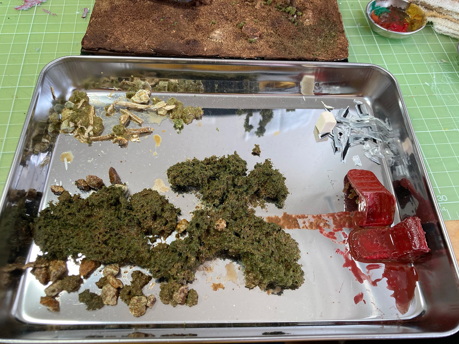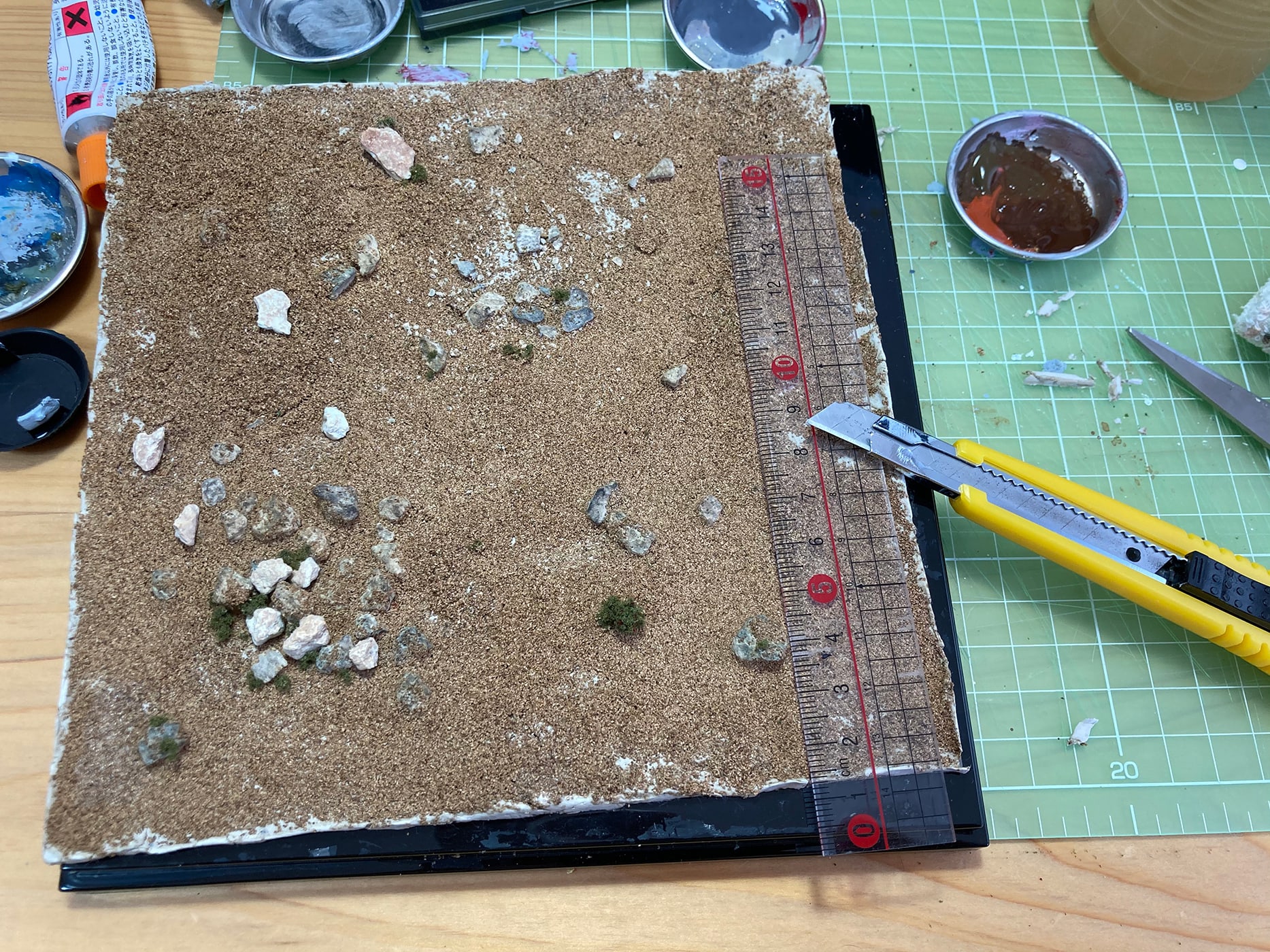 山中をイメージしていたので、砂の色を茶色に着色しました。乾くとまた色が変わるので、色味が難しい。
