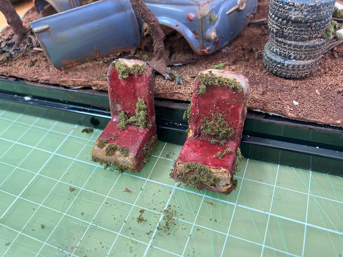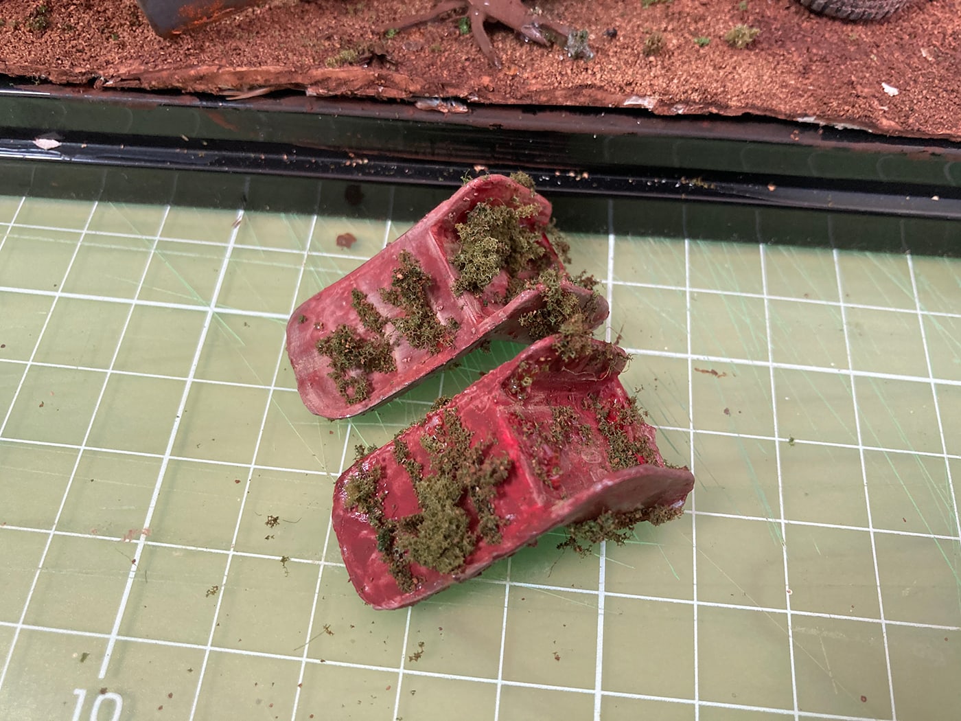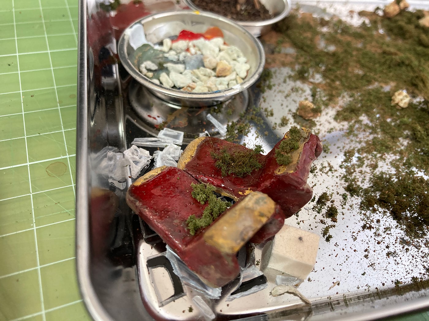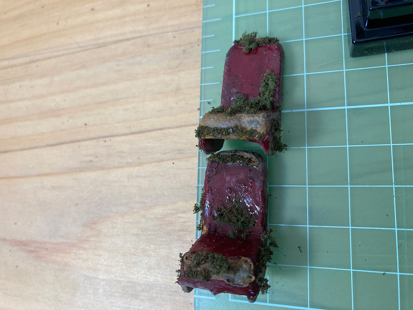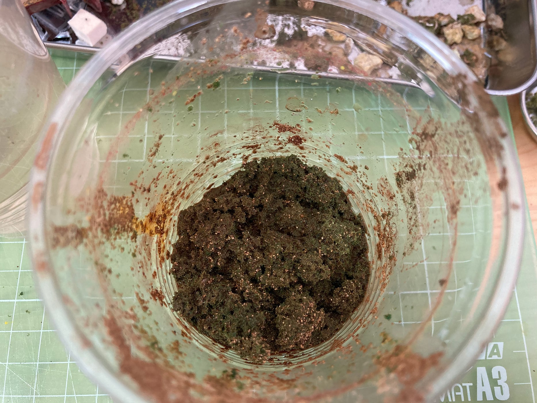 先程カッターで削り取ったカスの粘土がいい感じだったので、朽ちた木のクズとかに使えそうだと思って残しておきます。